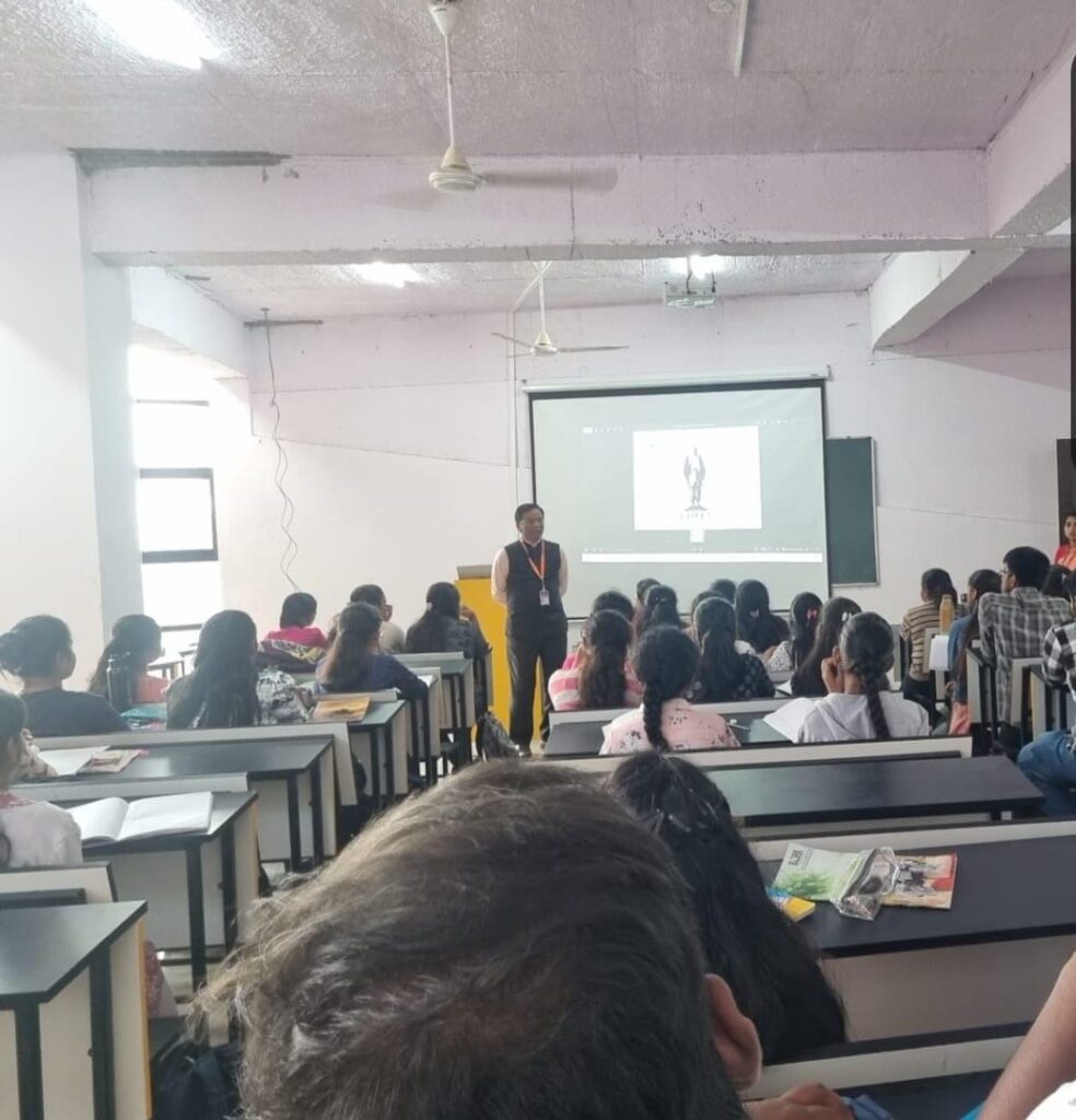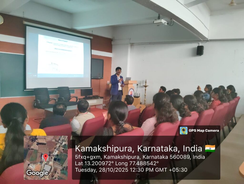 The seminar was delivered by Prof Jagadeesh Patil S, who shared his extensive knowledge and experience in the field of entrepreneurship and business development. The program was attended by students from various departments, who actively participated and interacted throughout the session.