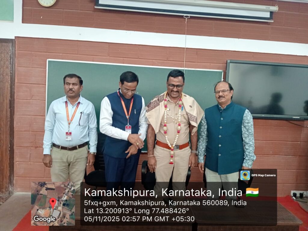 As a mark of appreciation, Principal Dr. M. S. Ganesha Prasad and Director Dr. Ganesh Babu felicitated Police Inspector Mr. Dilip Kumar for his valuable contribution to student awareness and community engagement.