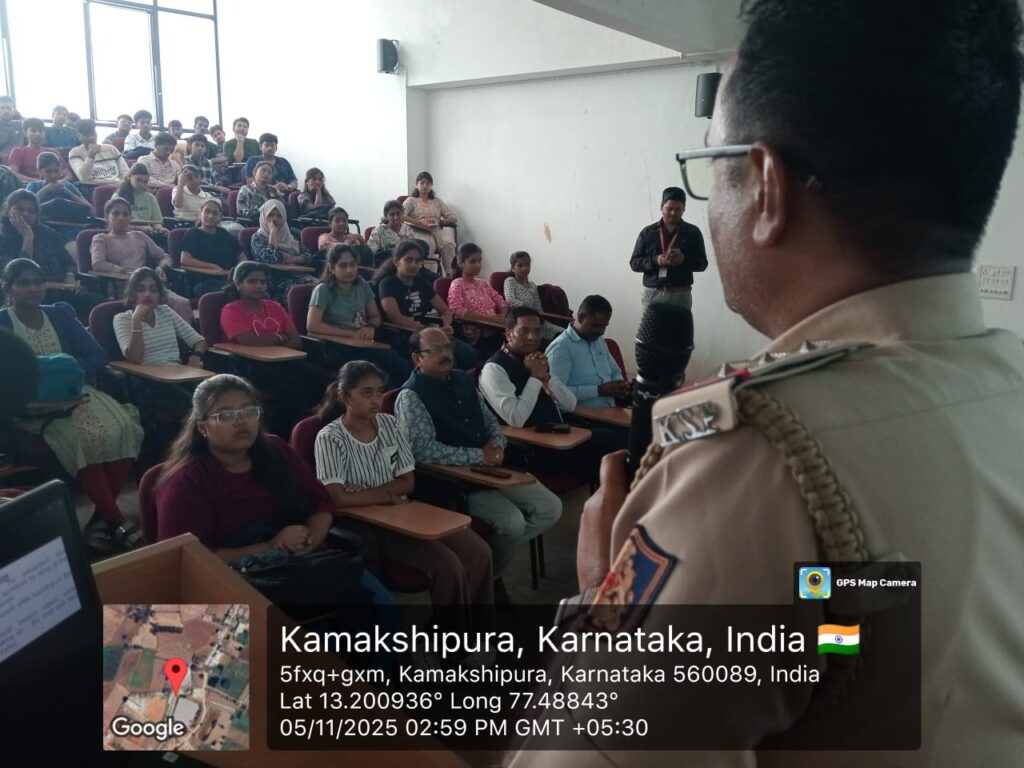 The session was led by Mr. Dilip Kumar, Police Inspector, Rajanukunte, Bangalore, who shared valuable insights on traffic discipline, civic responsibility, and the pivotal role of youth in building safer communities.
